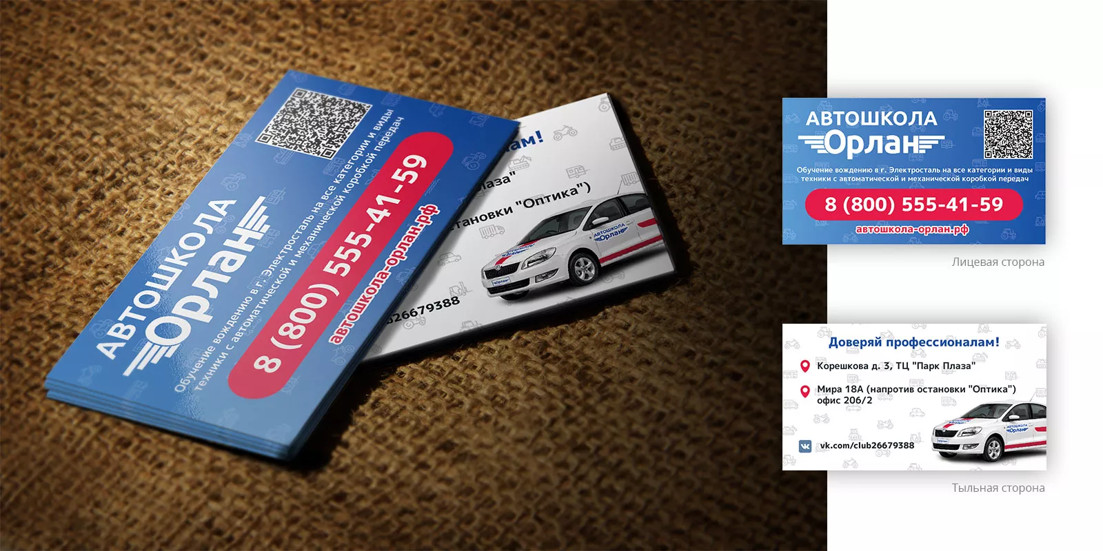 Разработка промо-визиток для автошколы «Орлан» в Жуковке